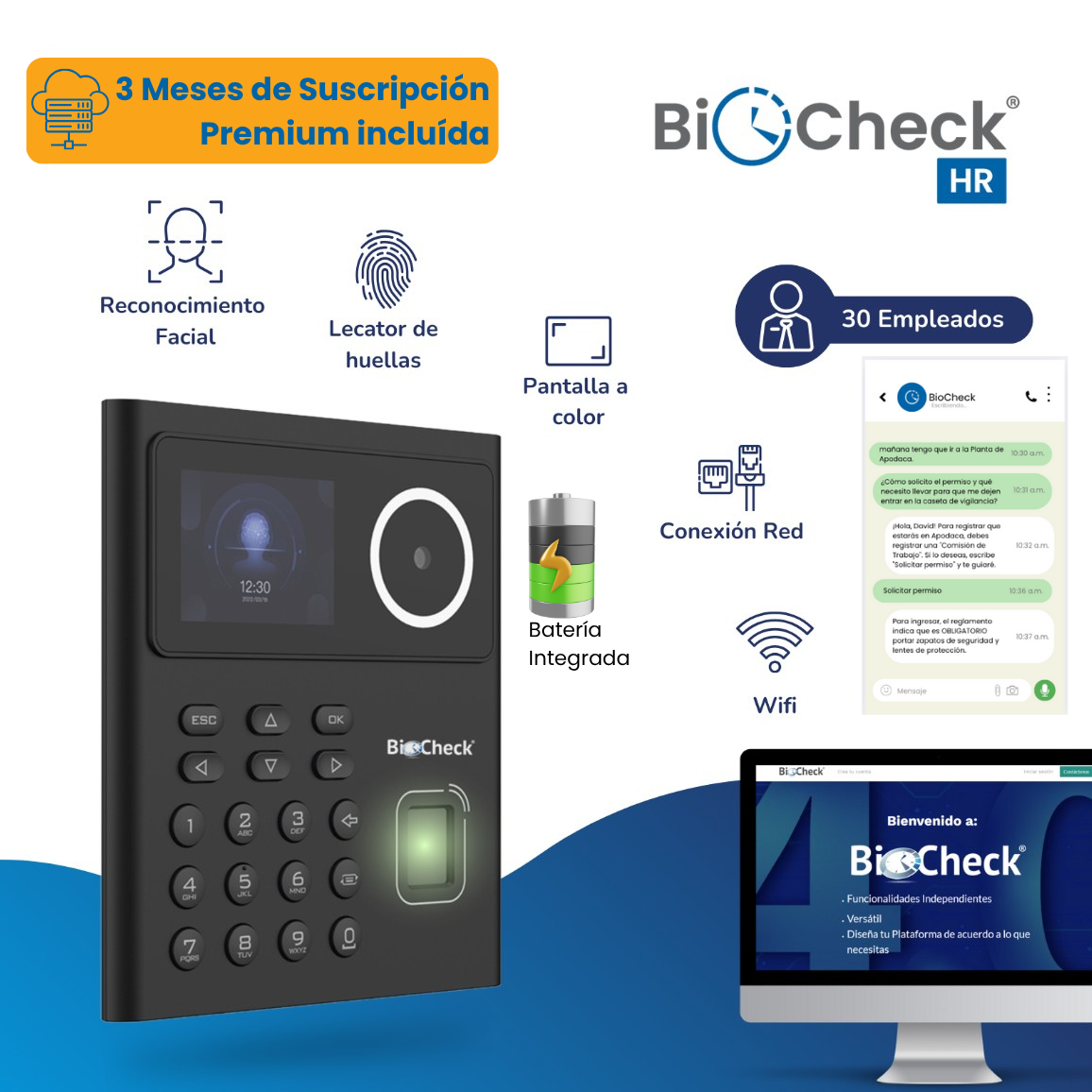 - Incluye BioCheck móvil y BioCheck WA (realiza chequeos / marcajes y consultas desde la aplicación móvil y WhatsApp)